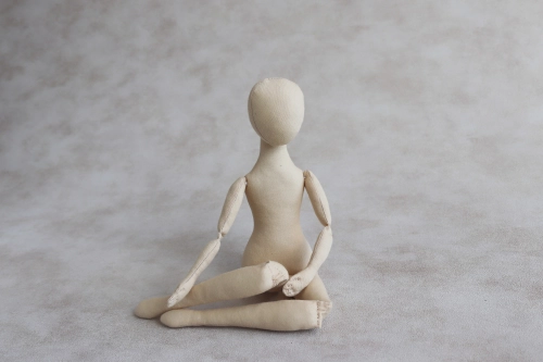В теле куклы 8 точек подвижности. Подвижные соединения в плечах, локтях, бедрах, коленях. Пуговичное крепление. В локтях и коленях перетяжки. Голова статичная.