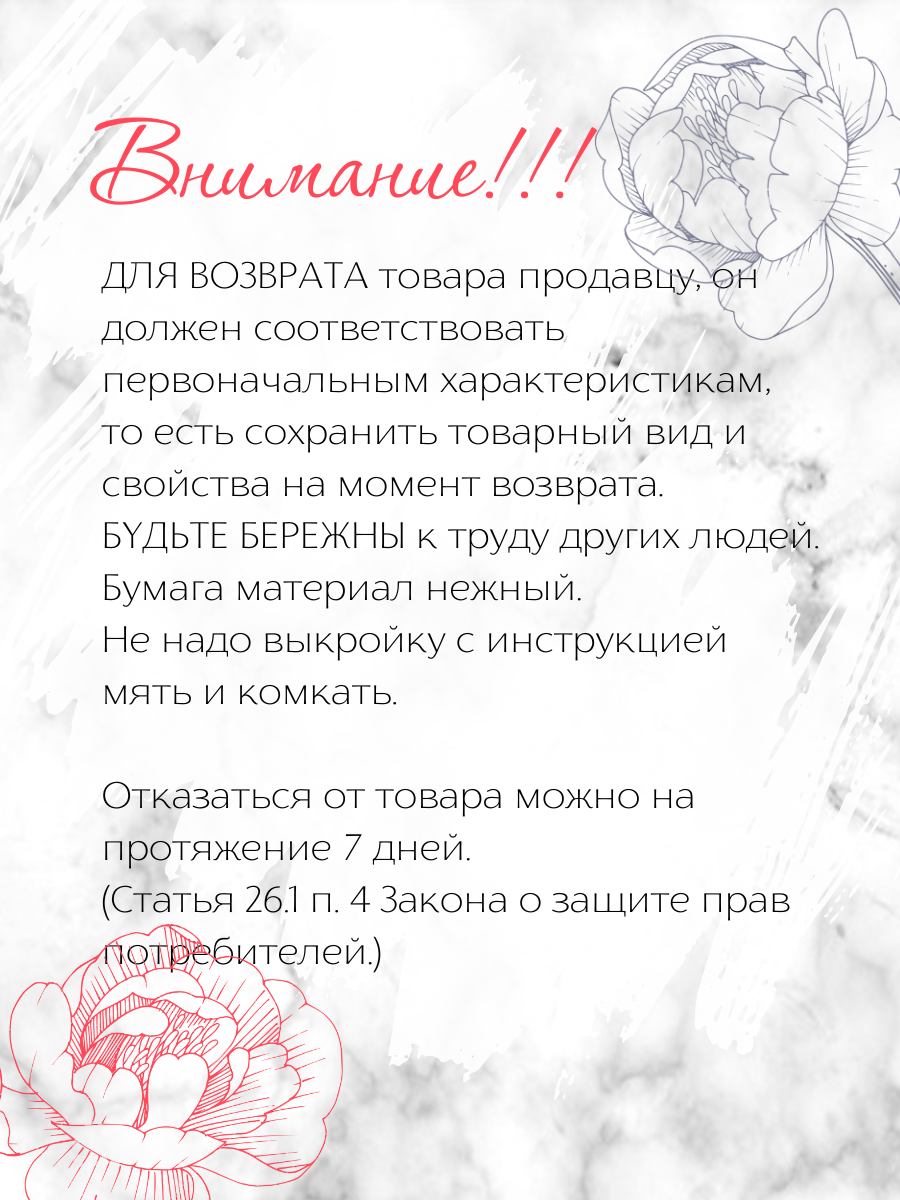 Выкройка дана в натуральную величину, без припусков на швы. Учитывайте это при раскладка лекал на ткани.